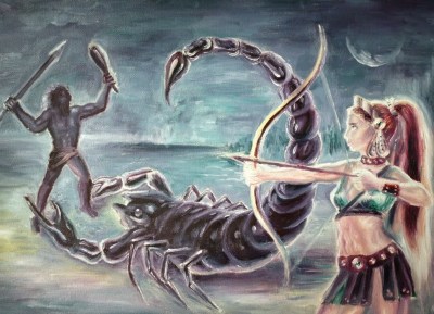 | In some versions of the the Greek mythology of the Death of Orion, Artemis might have killed the hunter Orion while in others, a scorpion directly stung it. |